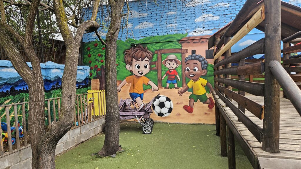 La intervención contempló la mejora de los juegos de madera y la renovación de los murales del espacio, los que hoy lucen llenos de color y vida gracias al trabajo de “Abujon”, artista local reconocido por su aporte al arte urbano en la ciudad de Curicó.