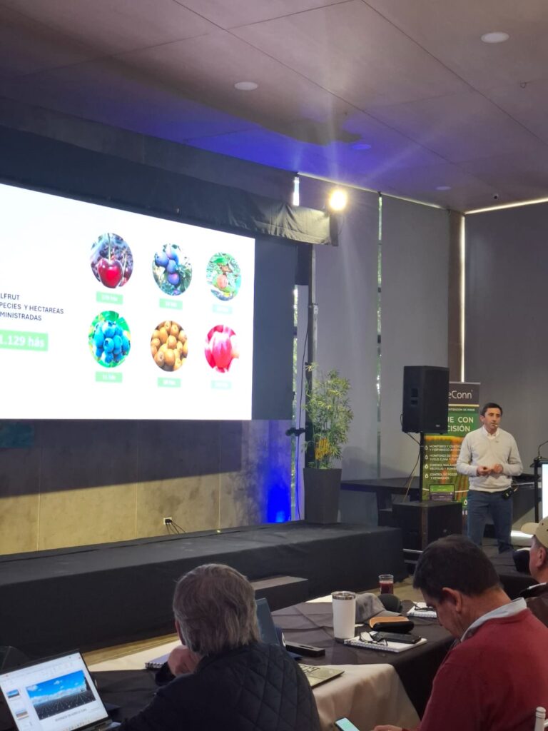 La exposición estuvo a cargo de Alejandro Salas Miranda, gerente agrícola de SOLFRUT, quien presentó la ponencia titulada “Inversión en tecnología de riego en cerezos”, destacando la importancia de una planificación técnica acompañada de asesorías especializadas para optimizar el uso del agua y mejorar la rentabilidad.